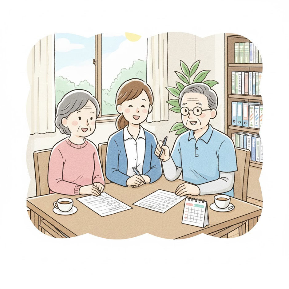 介護支援専門員(ケアマネージャー)が要介護者や家族の相談に応じたり、適切なサービスを利用できるよう、市や介護サービス事業者と連絡・調整を行います。